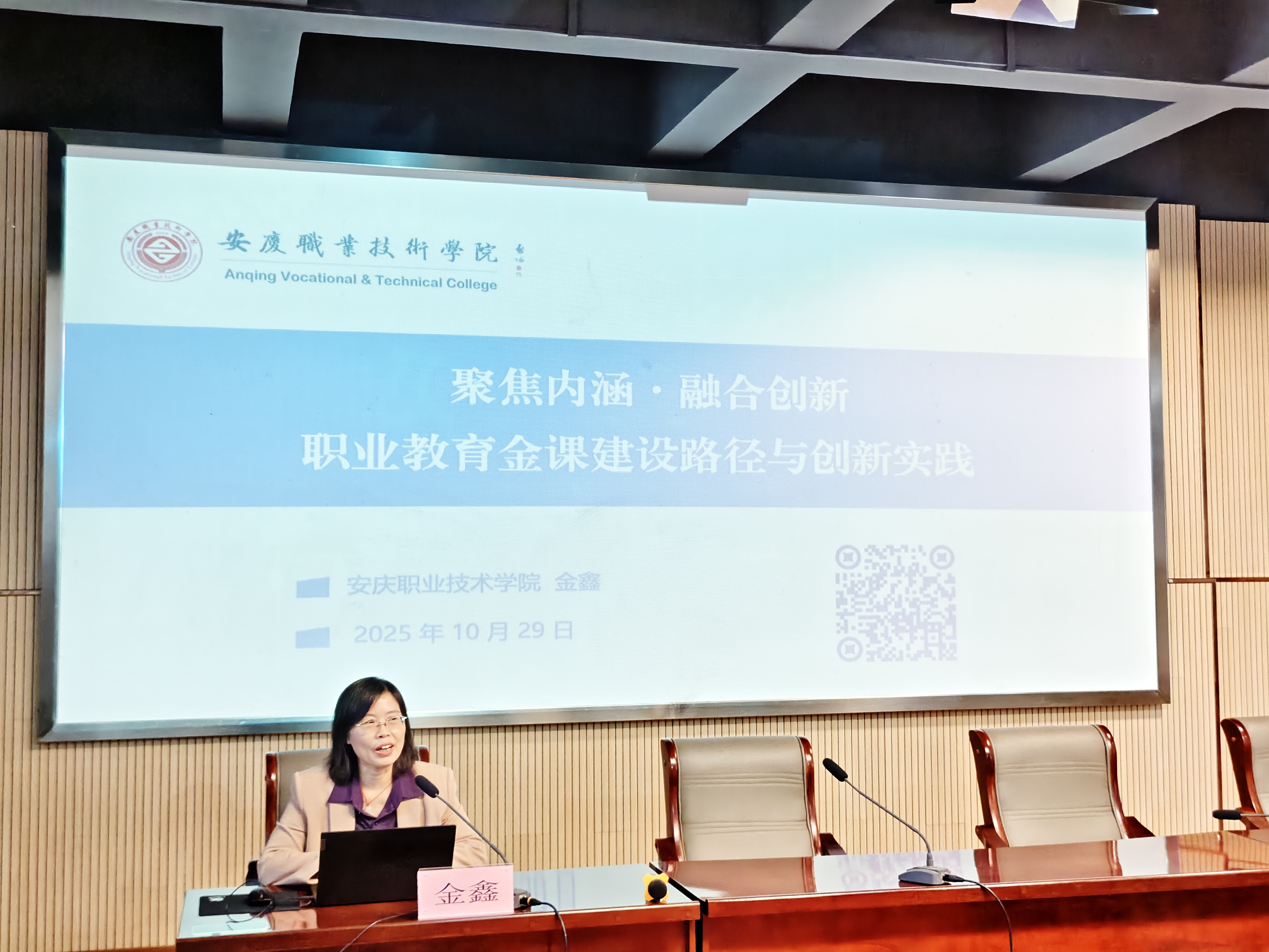 深挖职教金课内涵,协同探索教学革新之路。10月29日下午,为扎实推进职业教育“金课”建设,深化教学改革实践,我校特邀安庆职业技术学院教授金鑫担任主讲嘉宾,在二教109报告厅举办“职业教育金课建设路径与创新实践”专题讲座。讲座特邀安庆职业技术学院教授金鑫担任主讲嘉宾,教务处主任肖洁主持,校党委委员、副校长徐飞作总结讲话。全校教师齐聚聆听,共同探索职教创新路径,凝聚教学改革共识。