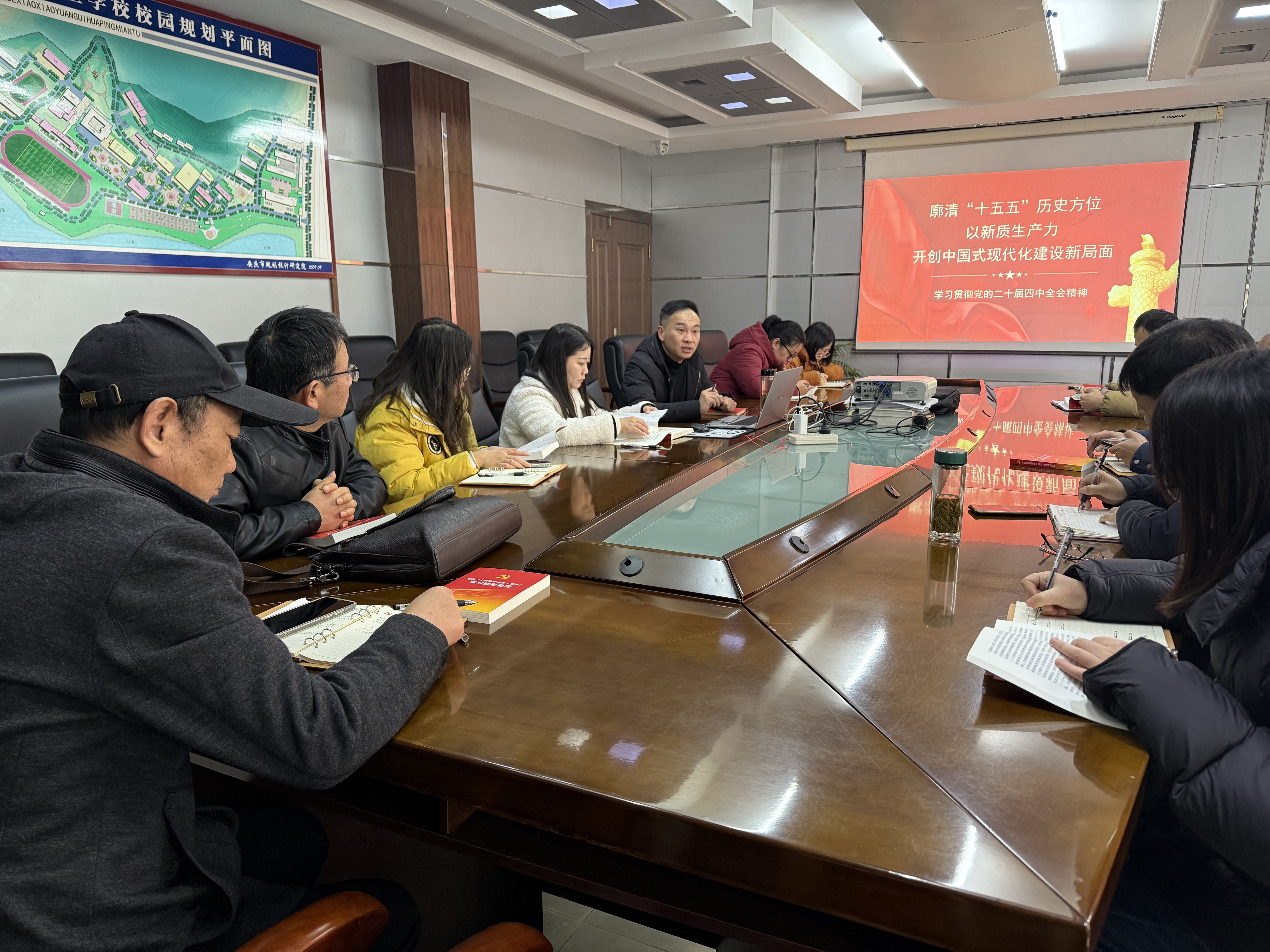 为深入贯彻党的二十届四中全会精神,引导支部党员教师将思想和行动统一到全会精神上来,12月17日,第三党支部开展学习贯彻党的二十届四中全会精神专题党课。