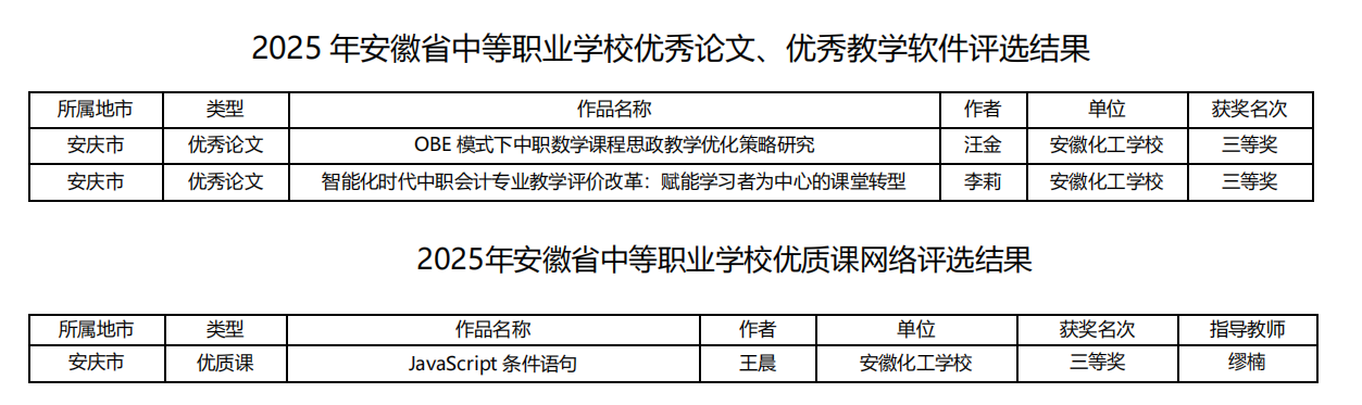 我校教师在2025年安徽省中等职业学校“三优作品”评选中喜获奖项