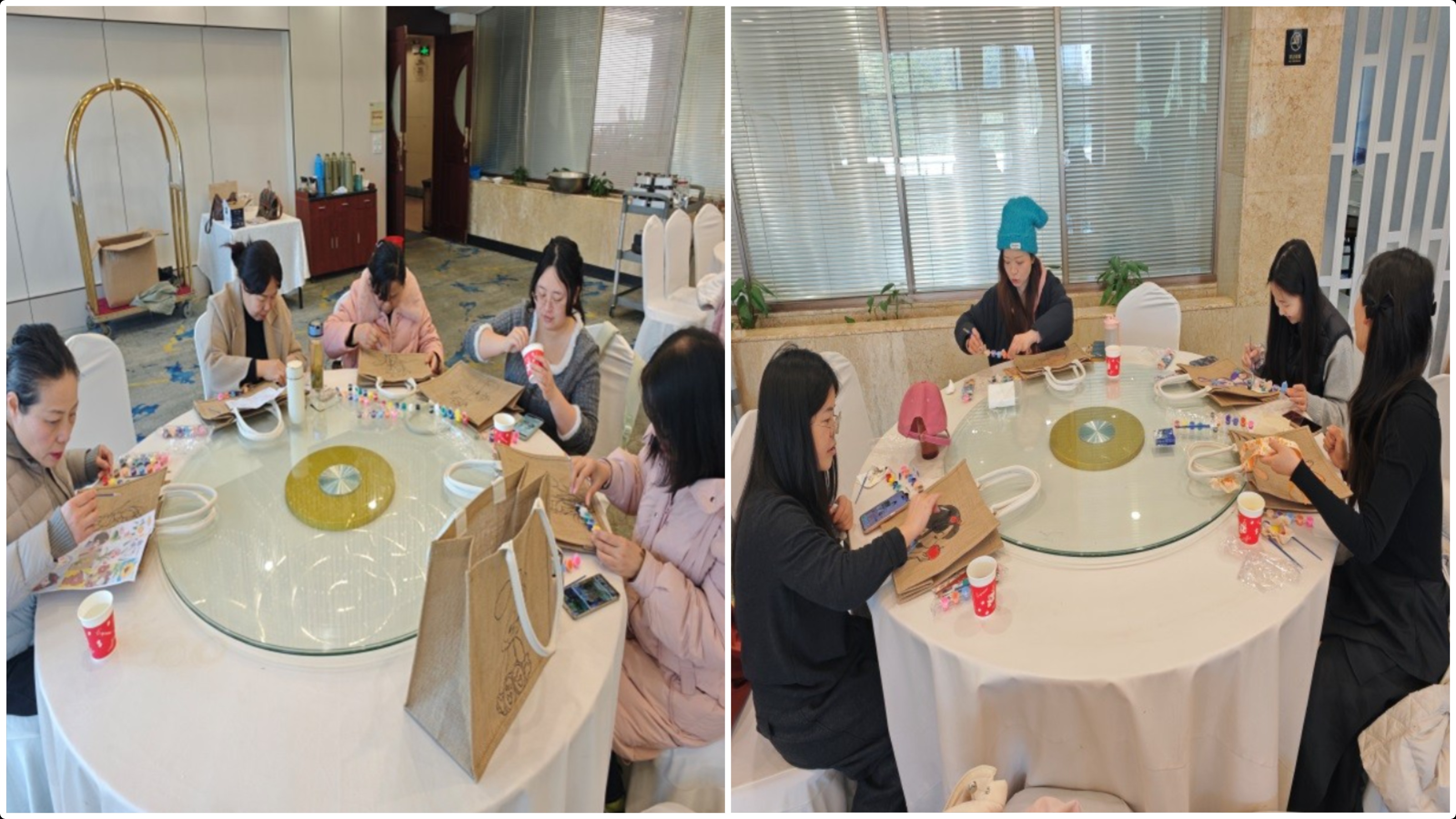 女教职工们迅速投入创作,调色、勾勒、填充,大家专注而认真,指尖流转间,一个个原本朴素的帆布包逐渐变得鲜活灵动、独具个性。“这个活动太有意义了,既能体验手工创作的乐趣,又能收获独一无二的专属提包,感觉自己的艺术细胞都被激活了!”完成作品的女教职工们互相展示、交流心得,现场洋溢着成就感与幸福感。