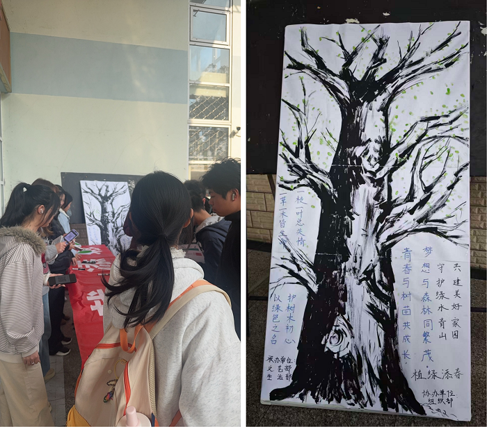 阳春三月,草木蔓发。为深入践行“绿水青山就是金山银山”理念,增强青年学子爱绿护绿的责任感,3月12日下午,我院在杏园餐厅前广场举办了“手印植绿意,青春护校园”植树节特别活动。100余名学生代表以别开生面的方式,为校园增添了一抹独特的“青春绿”。