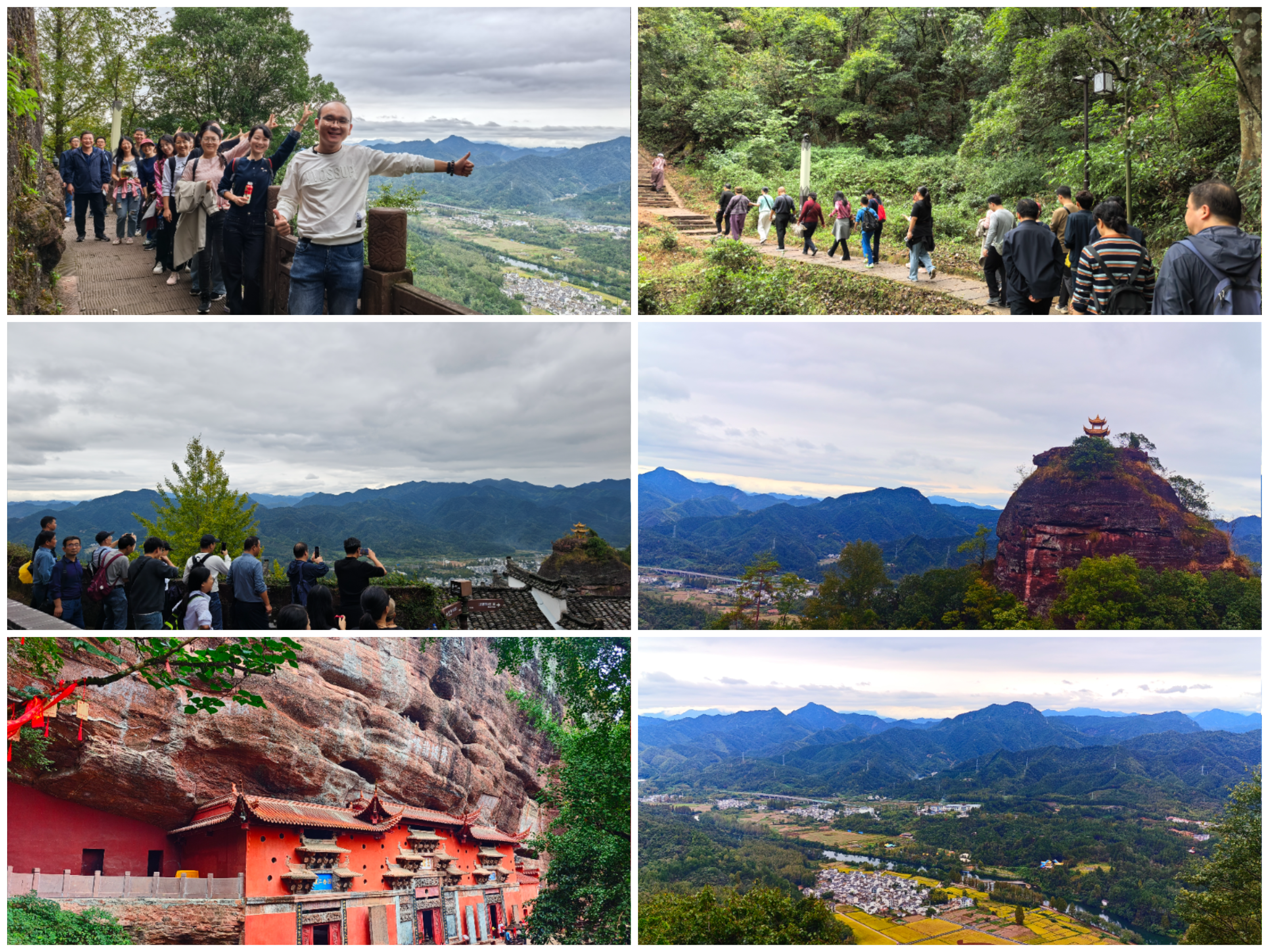 活动当日,教职工们首先抵达位于休宁县的道教圣地齐云山。大家沿着蜿蜒的山路拾级而上,畅游于丹霞峰林之间。山上摩崖石刻林立,人文景观与自然风光相映成趣,大家或驻足观赏,或拍照留念,在攀登与交流中舒缓了平日的工作压力,也加深了对徽州历史文化的理解。