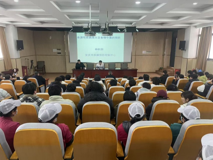为提升校园食品安全管理能力,筑牢校园食品安全保障防线, 2月26日下午,学校特邀安庆市疾病防治控制中心主任医师杨积朋来校开展“食源性疾病简介及食物中毒预防”专题宣讲会。副校长徐飞、后勤处相关同志、杏林餐厅及医务室工作人员、各班学生干部代表等共80余人参加了此次培训会。