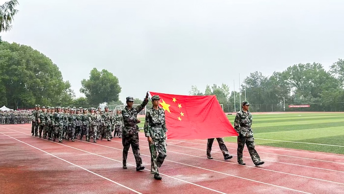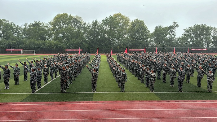 分列式上,新生们身着迷彩,步伐铿锵,展现出整齐划一的队列素养;军体拳表演刚劲有力,尽显军人风采;《我是中国人》手语操与《强军战歌》的深情合唱,更以肢体与歌声生动诠释了新时代青年的家国情怀。