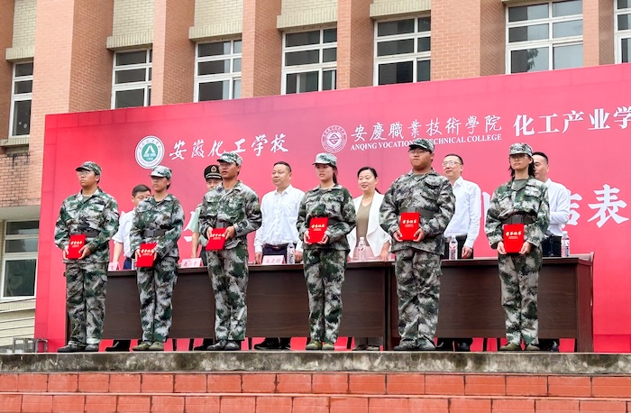 副院长徐飞宣读了《关于表彰2025级新生军训先进集体和先进个人的决定》,以表彰军训期间表现突出的集体与个人。学院领导与大观区人武部领导共同为获奖代表颁奖,现场掌声雷动,激励全体新生以榜样为镜,砥砺前行。