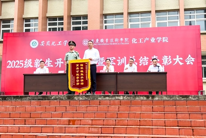 9月30日上午,化工产业学院2025级新生开学典礼暨军训总结表彰大会隆重举行。院领导、大观区人武部政委聂竹青、校企合作办主任杨元纲出席大会,学工人员、军训教官与 2025级全体新生共同见证这一庄重时刻。大会由院纪委书记方一主持。