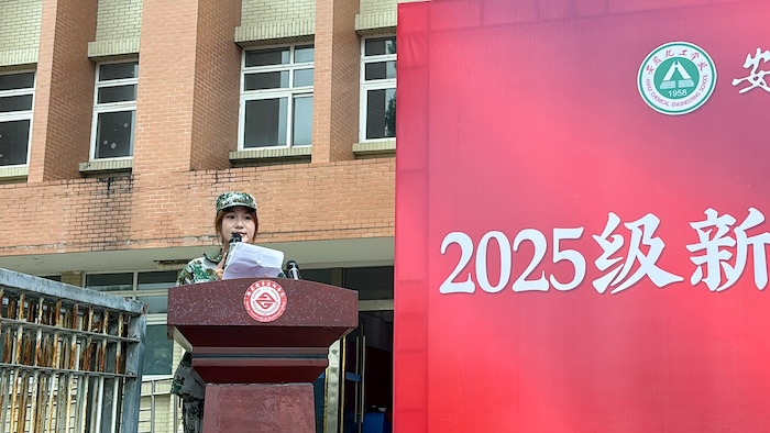 新生代表曹梦圆同学在军训总结发言中回顾了三周军训的收获与成长,展望了大学生活,并号召同学们以军训精神为指引,努力成长为新时代有为青年。