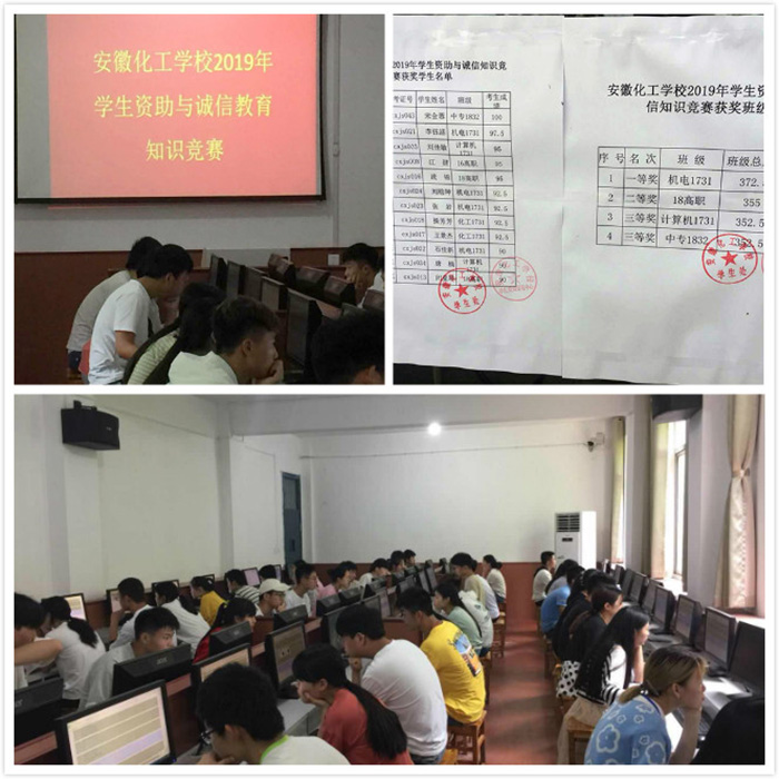 为更好地让学生了解诚信的内涵、本质等知识要点,经过班级选拨测试,6月5日,诚信与资助知识竞赛在学校工艺楼206机房举行。