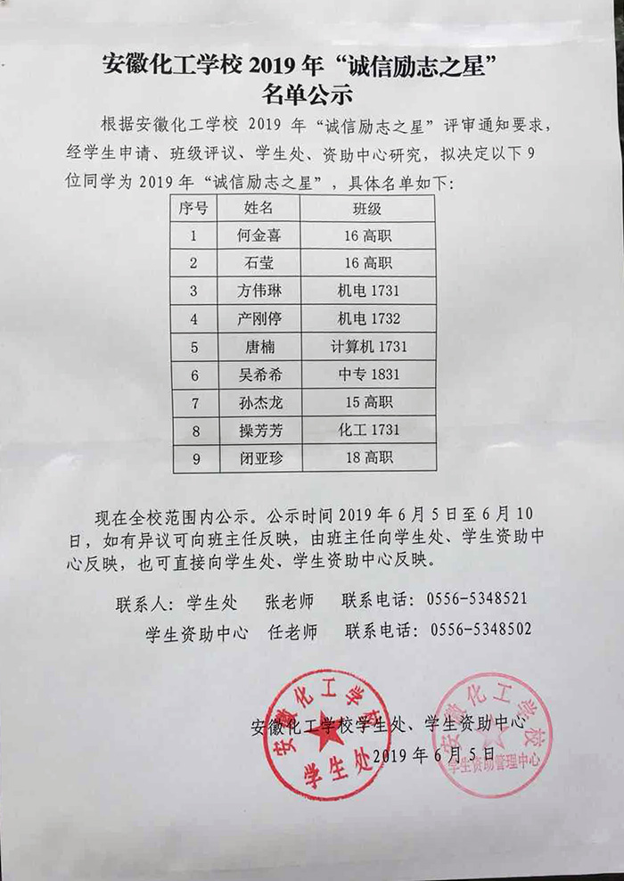 在活动中,学校资助中心结合“资助助学优秀学生典型宣传评选活动”的有关要求,以开展资助诚信教育为契机,开展了评选“诚信励志之星”活动。通过诚信励志之星的评选,在全校学生中树立榜样,发挥榜样的作用, 带动全校学生共同营造诚实守信、积极向上的良好氛围。