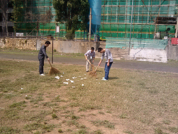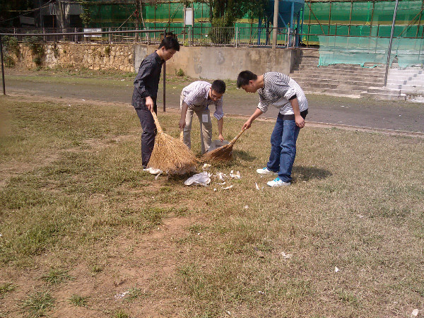 这种无私奉献、乐于助人的雷锋精神值得全校同学学习,希望大家以他们为榜样,树立正确的环保意识,养成良好的卫生习惯,共创良好的校园环境!